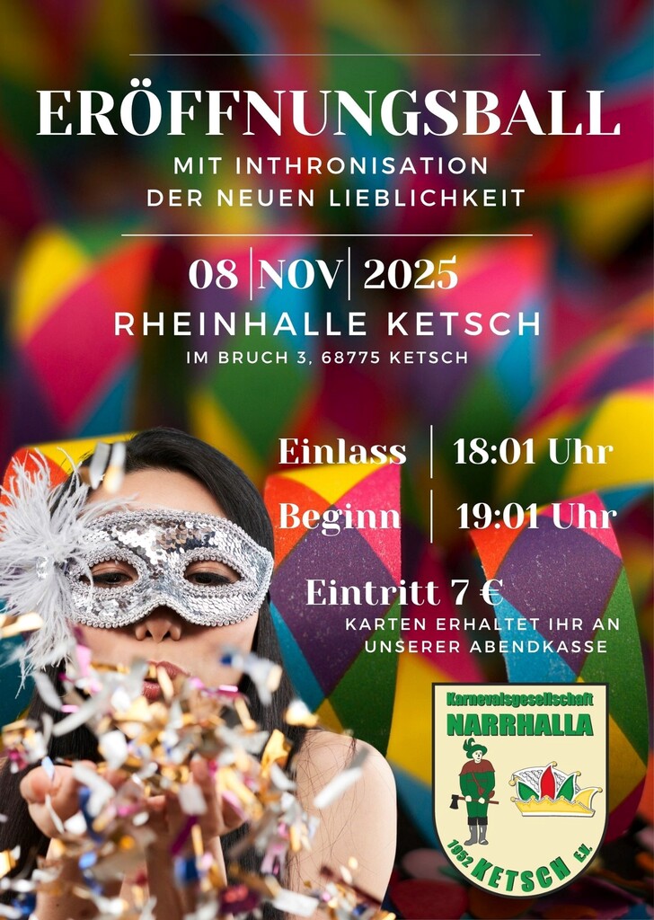 Eröffnungsball KG Narrhalla Ketsch e.V. am 08.11.2025